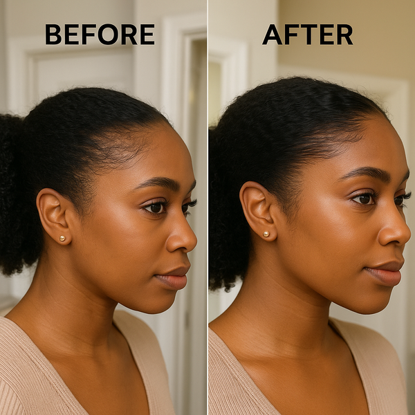 Independent studies on our hero ingredients like Redensyl® and Anagain™ show up to 53% improvement in hair density within 12 weeks — with many Black women reporting reduced shedding, filled-in edges, and visible baby hairs as early as 3–4 weeks, even in areas affected by tension or traction damage.